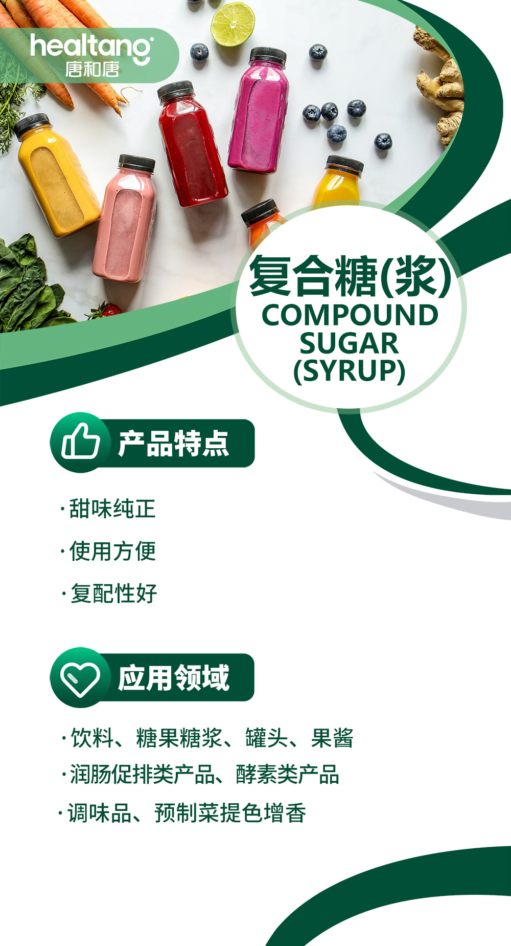 唐和唐复合糖(浆)中含l-阿拉伯糖、木糖、葡萄糖等多种糖,甜味纯正、使用方便、复配性好。根据不同功能特性和使用场景,分为益生元浓缩液和反应型糖浆。