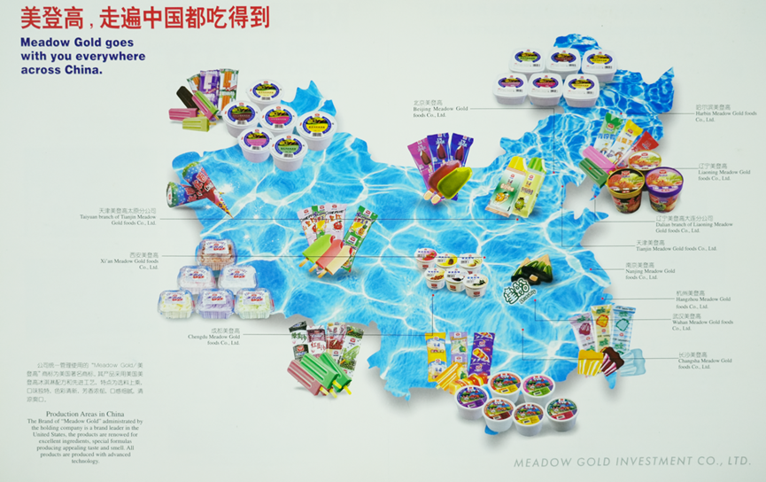 美登高品牌创始于1901年的美国西部农场,品牌名 meadow gold 寓意金色牧场,并于1993年进入中国,专注于冰淇淋产品的研发与生产。作为首批进入中国市场的外资冰淇淋品牌,美登高先后在全国建立了产品研发中心与17个工厂,同时建设渠道和冷库运输供应链,打破了地域性的限制,成为真正意义上的全国性冰淇淋品牌。
