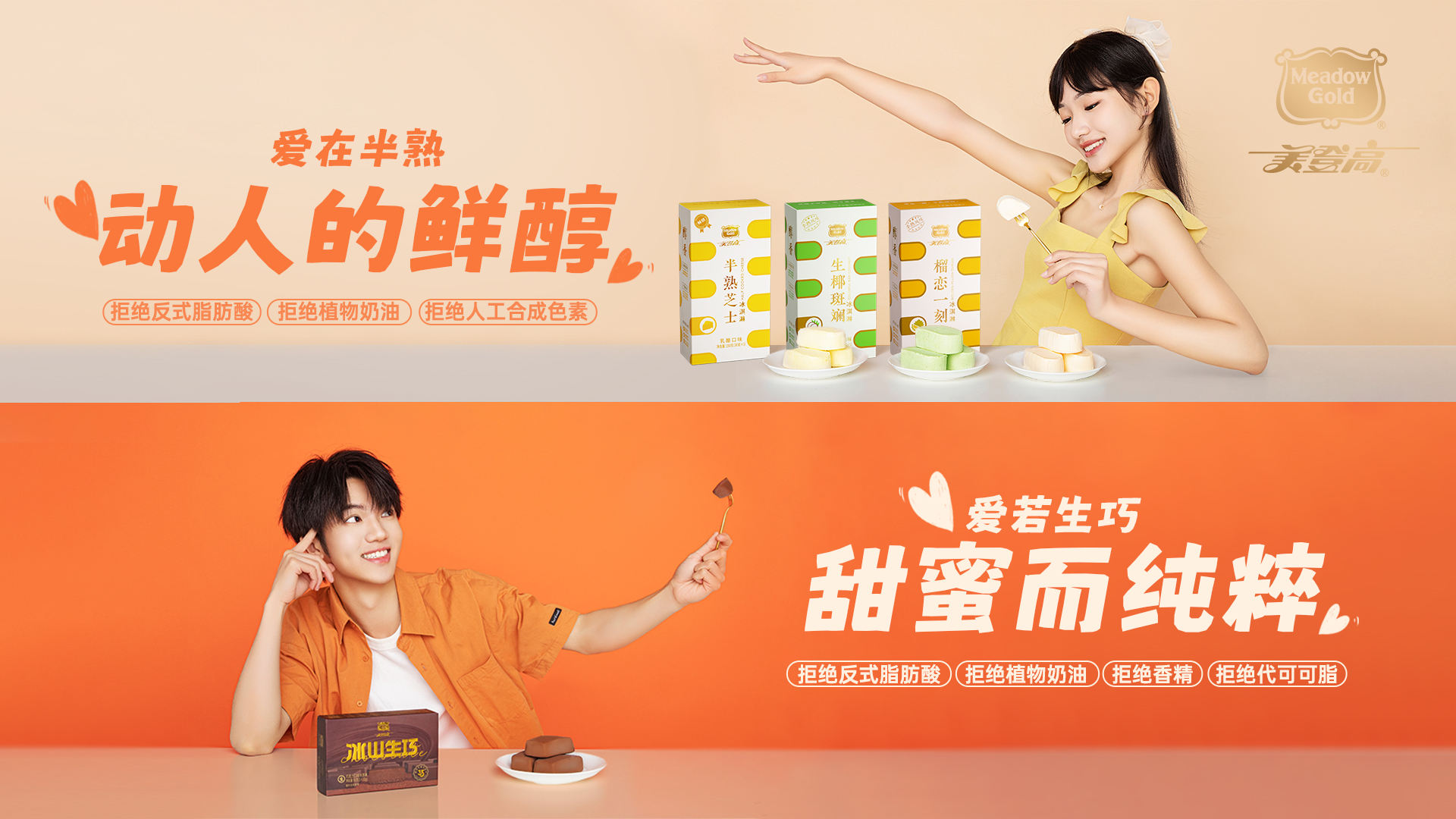 120年品牌沉淀,30年专注中国冰品市场,美登高用“心”做美滋美味冰品。全线产品推行3大坚持:坚持优质乳源原料、坚持轻简配方的研发理念、坚持以0反式脂肪酸为代表的健康理念 ,持续迭代产品,陪伴一代代年轻人成长。