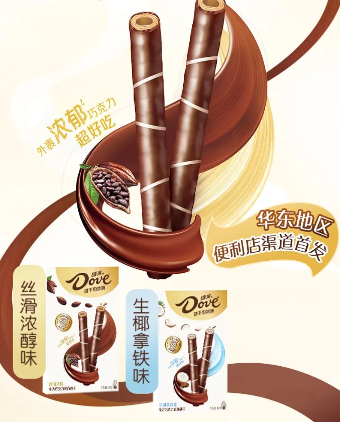 2023年9月,德芙饼干丝滑卷新品在华东地区便利店渠道首发。此次新品包含丝滑浓醇味和生椰拿铁味两种新口味。