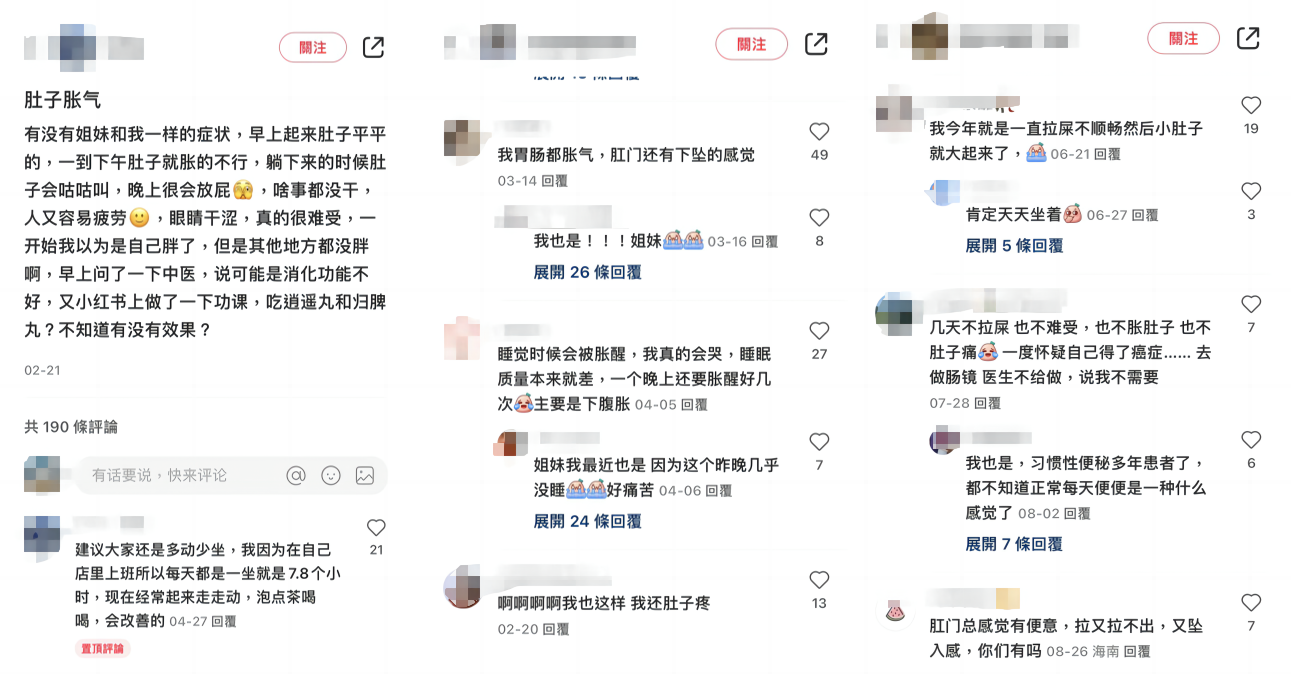 在办公室里的白领,在工位上一坐可能就是3-4小时,不利于肠道蠕动,自然便秘、胀气等问题就经常出现。在饮食上,通常用点外卖的方式解决一日三餐,饭菜不卫生、重油重盐,给肠道又增加一层负担。在《2023国人“肠”烦恼及益生菌消费洞察报告》中,数据表示工作时长超过8小时的人群在肠道问题人群中占比超7成。[4]