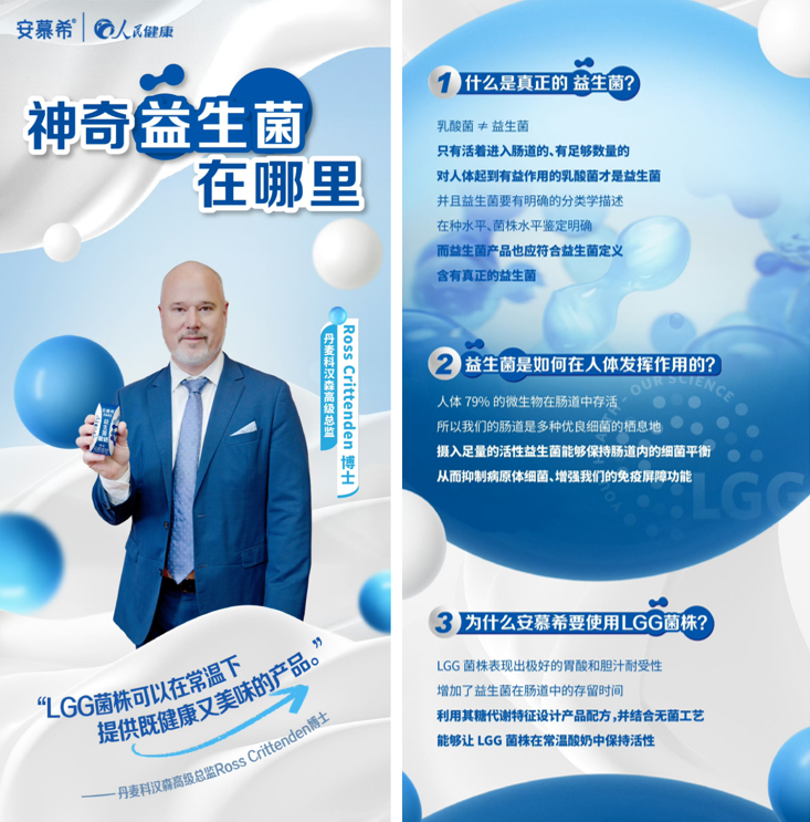 安慕希将优质菌种、活性益生菌、足量活菌数,三大益生菌要素集齐在常温酸奶上,突破行业的技术壁垒,延伸出益生菌在乳制品上的应用方式,满足不同人群对益生菌的需求。