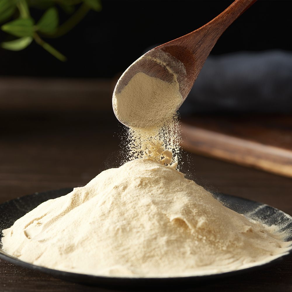 该款玉米风味酱粉的全段工艺采用物理精制工艺,在发酵过程中不使用任何添加剂,产品由有机酸、氨基酸、糖等大量的天然产生风味物质组成。此外,该款产品不含任何杂味,能够形成鲜味相乘的作用,可以和多种食品及配料协同提鲜。