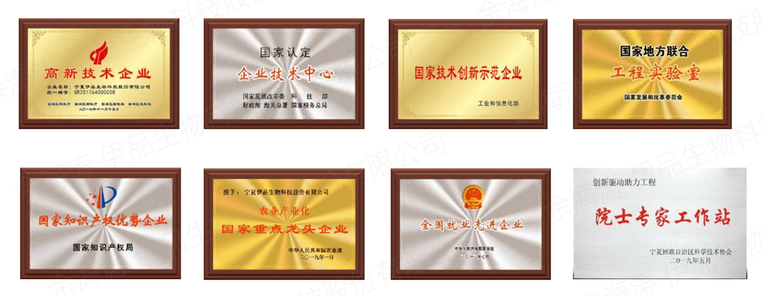 宁夏伊品生物科技股份有限公司,被评为“国家重点龙头企业”、“高新技术企业”、“国家认定企业技术中心”、“国家知识产权优势企业”、“国家技术创新示范企业”、“全国就业先进企业”,同时也是“国家地方联合工程实验室”、“院士专家工作站”。