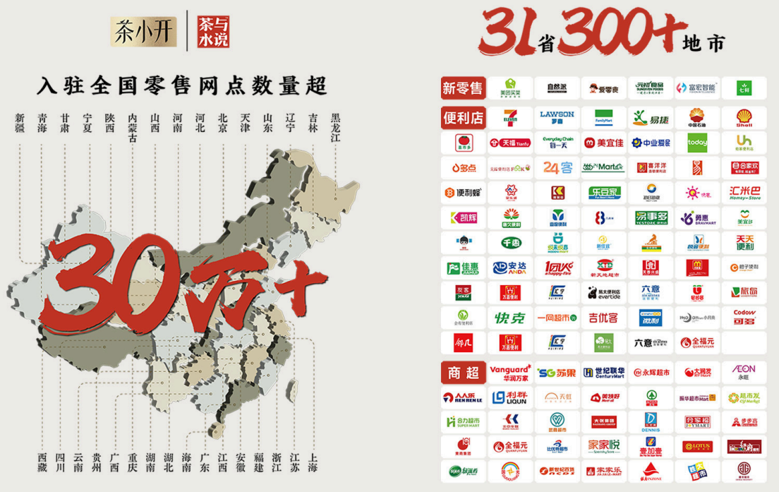 在2022年,茶小开(隶属深圳市开心一点食品饮料有限公司)就开始布局茶饮料市场;2023年推出了第一款无糖茶——茶小开“1分甜”系列,该系列产品首次选用核心产区茶叶,配方“七个0”(0糖、0卡、0脂、0茶粉、0茶浓缩液、0香精、0防腐剂)。同年9月,原叶名茶“茶本味”系列上市。2023年,茶小开的销售规模破亿,现已入驻全国30万 零售网点,覆盖范围广泛。