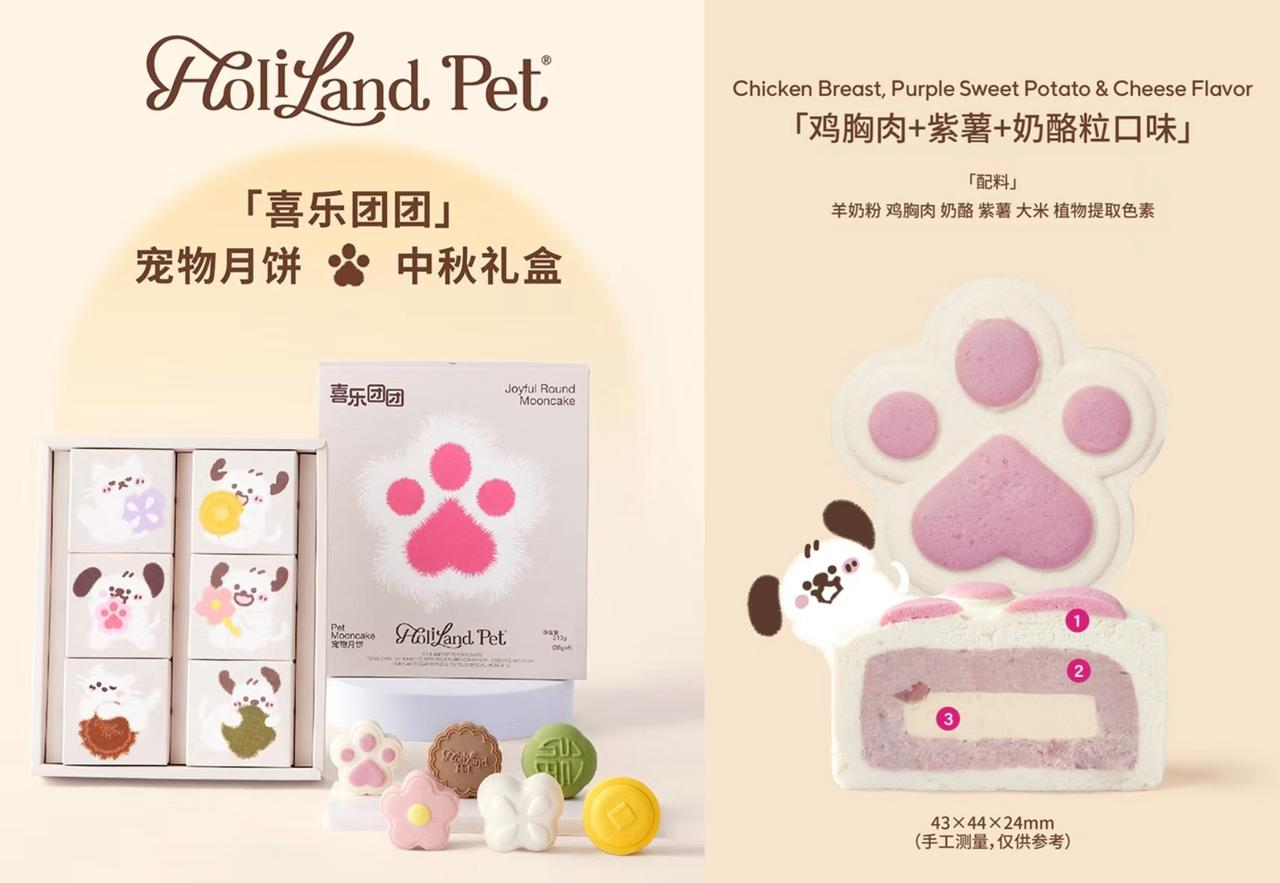 同时,中秋将近,好利来也推出了宠物月饼“喜乐团团”礼盒,内有三种口味的月饼,分别是鸡胸肉 紫薯 奶酪粒口味、鸭胸肉 红薯 牛肉粒口味,以及牛肉 山药 鸡胸肉粒口味。