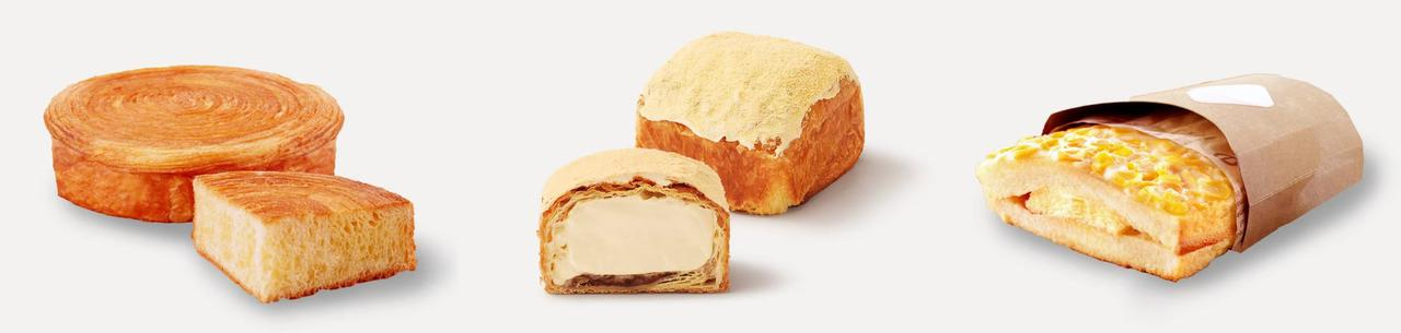 现烤面包系列有枫糖唱片——上榜大众点评网友推荐名单、酥香肉松沙拉包、奶酥菠萝包、玉米芝士三明治、蛋挞、奶油瀑布包、巧莓核桃恰巴塔、岩烧豆乳布甸包等。