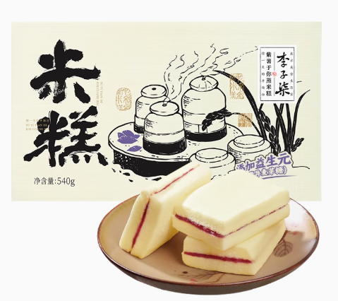 紫薯于你蒸米糕是李子柒品牌的热门产品之一,定价为29.9元/540g(17-19小包),月销量达到数万件。
