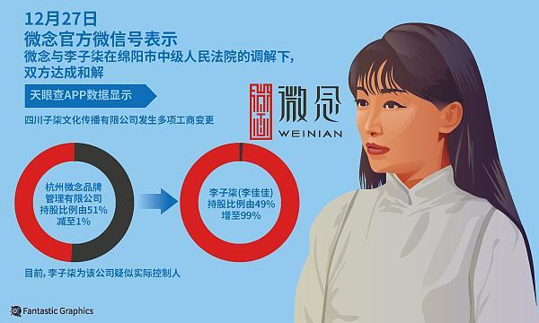2022年12月26日,子柒文化发生工商变更,李子柒本人成为子柒文化实际控制人、最终受益人,持股比例为99%,微念持股比例为1%,且微念大股东刘同明退出高管行列。微念九游会官网最新显示,「李子柒」品牌由四川子柒文化传播有限公司在特定类目范围长期独占许可授权杭州微念品牌管理有限公司合作。