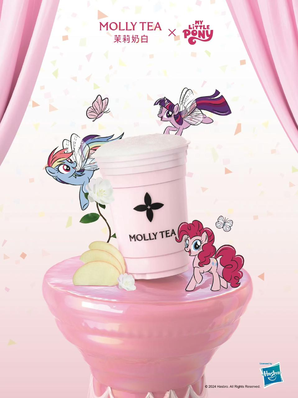 2024年9月,茉莉奶白与美国知名电视动画《小马宝莉》开展联名活动。联名饮品包含六款经典茶饮,分别为茉莉奶白、一朵茉莉花、茉莉针王、栀子奶白、一朵栀子花以及白兰。《小马宝莉》中小马们可爱个性、真诚正直的形象,也契合了茉莉奶白传递梦想与美好的理念,为消费者带来温暖又充满童趣的体验。