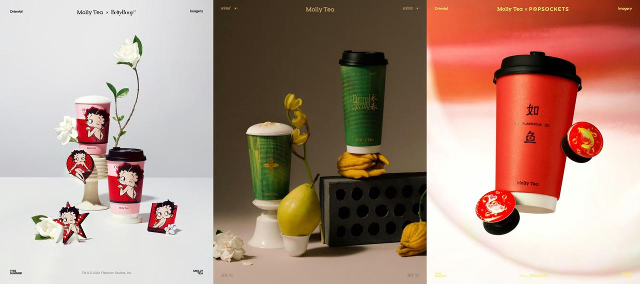 针对不同产品,茉莉奶白也匹配了粉、绿、黑等特色鲜明的色调,联名设计上也与品牌调性相呼应,不仅强化了产品的视觉印象,还让消费者在拍照和社交媒体分享时能够获得更好的视觉效果,从而进一步扩大了品牌的传播力和影响力。