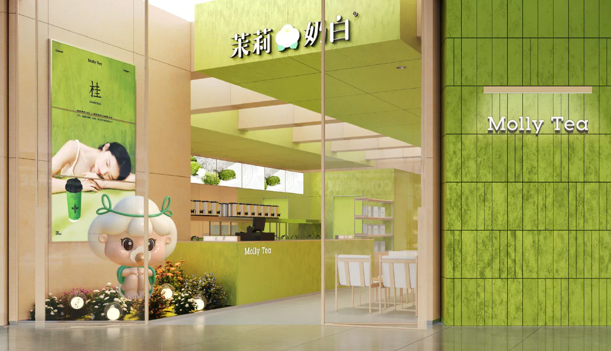 色彩是很多消费者对品牌的初印象,也是品牌视觉传达中的关键元素。茉莉奶白的门店大多采用原木色的现代装修风格,结合绿色、白色等品牌代表色,营造出了自然、清新和优雅的品牌氛围。
