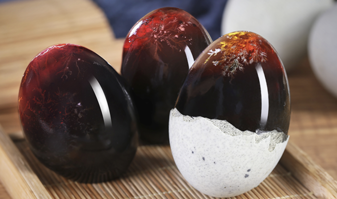 他先单独尝了蛋清,随后像吃奶油一样蘸了蘸蛋黄进行品鉴。他评论道:蛋清很q弹,蛋黄的质地和奶油一般,吃起来有浓郁的“皮蛋味”。他认为这种风味回味无穷,整体来说令人愉悦。