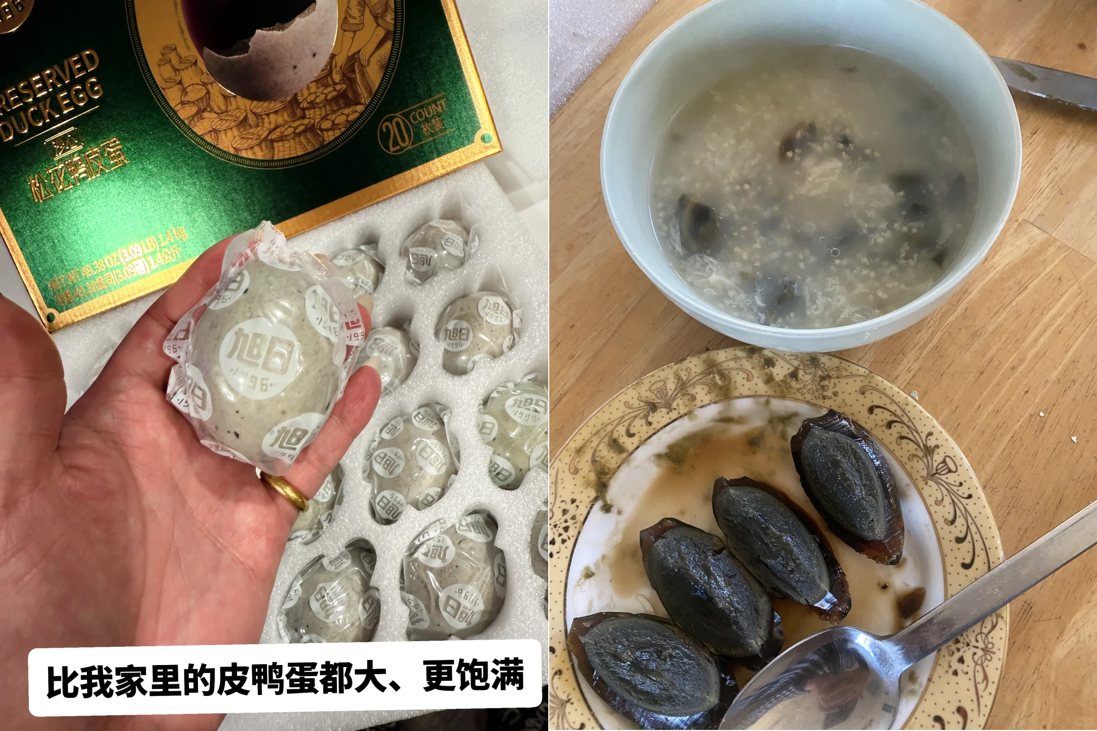 有的拿costco皮蛋和华人超市(主要售卖中国特色商品的海外渠道)买到的对比,认为其不仅品质好,价格也更低;有的一冲动直接入手了6盒(一盒有20个);还有的用户要拿皮蛋作圣诞礼品,代替巧克力......即使真有开饭店的来批量拿货,恐怕也不奇怪。