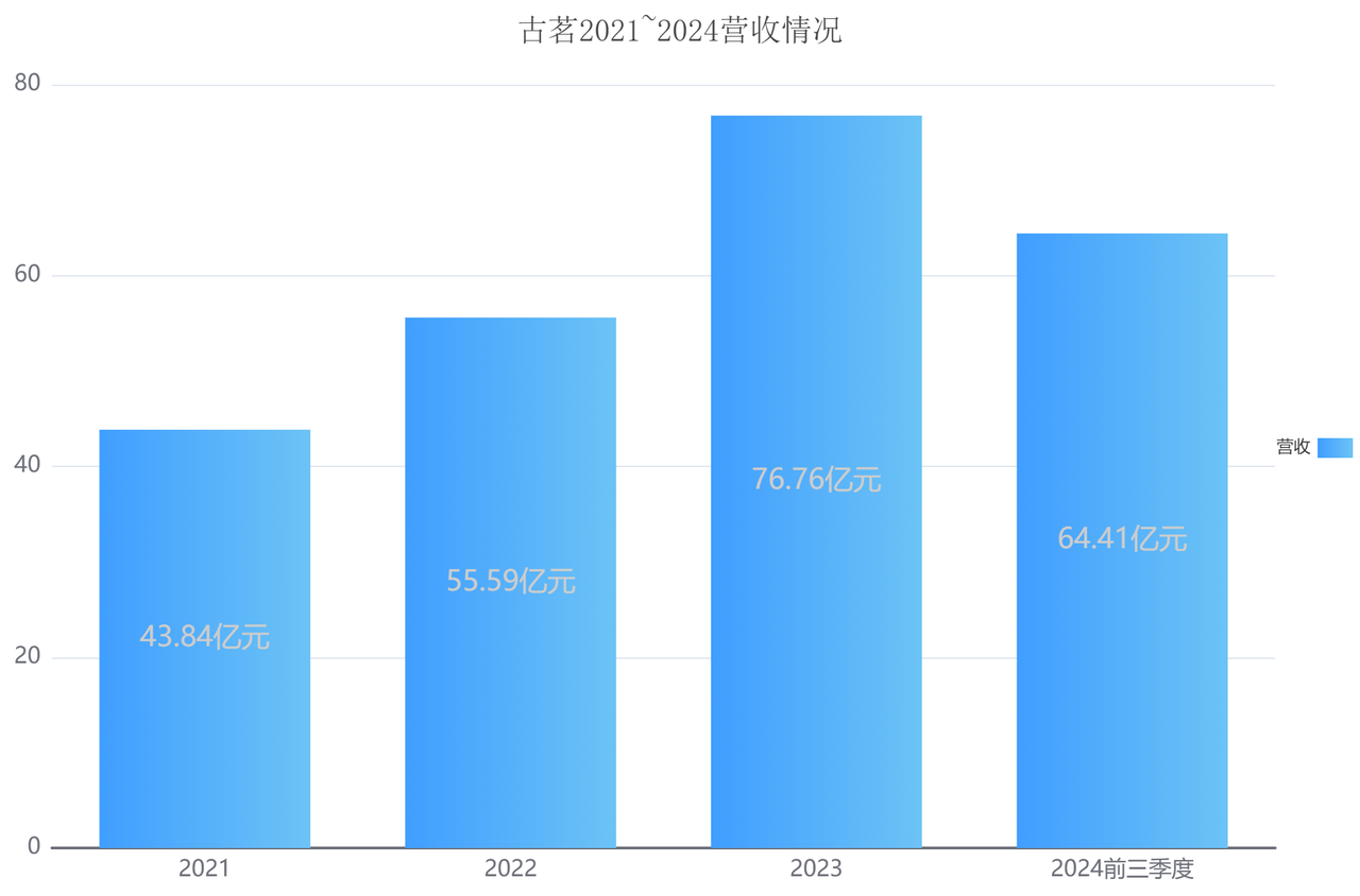 从2021年到2023年,古茗的营收分别为43.84亿元、55.59亿元和76.76亿元,对应0.24亿元、3.72亿元和10.96亿元的净利润;2024年前三季度,古茗营收64.41亿元,2023年同期为55.71亿元。