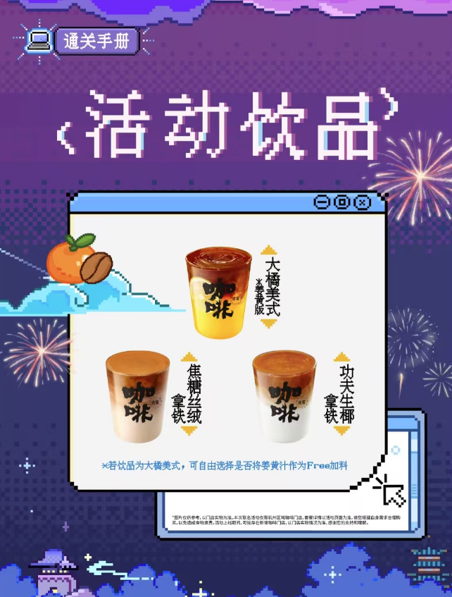 2025年1月,古茗与热门剧集《永夜星河》联名,以杭州为限定区域,活动饮品为大橘美式——它早在2024年就已上新,但这一次经过了全新升级,添加了自研的柑橘汁,将新鲜果汁应用于现磨咖啡产品中。此次活动还搭配了联名杯套、双杯纸袋、光栅卡、变色烟花陶瓷杯等包材和周边,同时推出了多样化的优惠套餐,并结合线上互动和线下打卡活动,在社交媒体上引发热烈讨论。