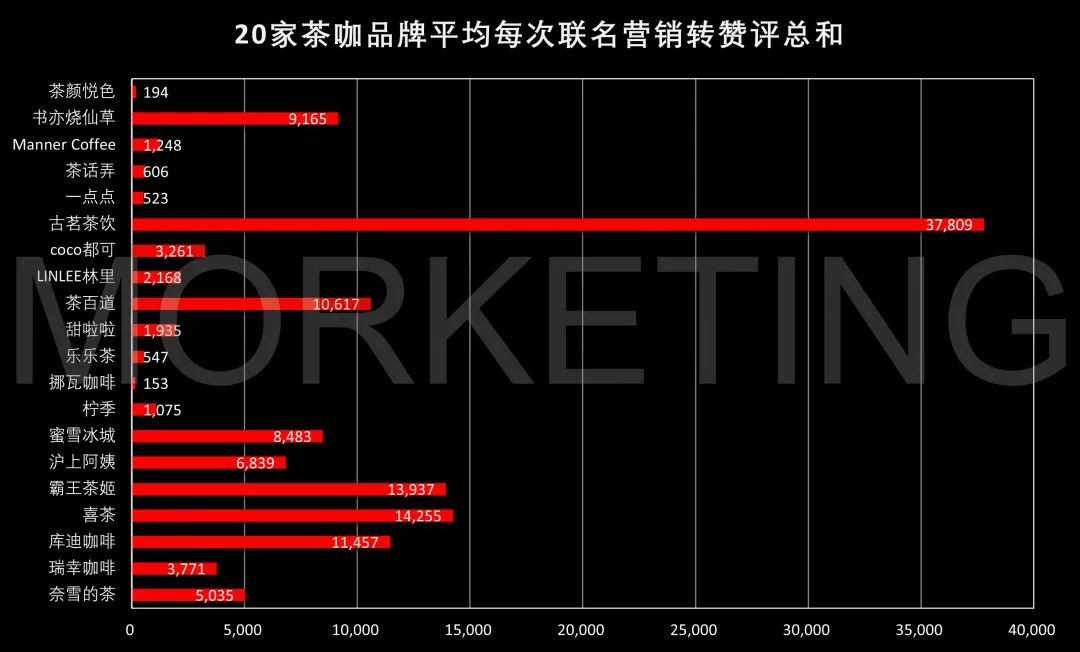 茶咖品牌平均转赞评总数
