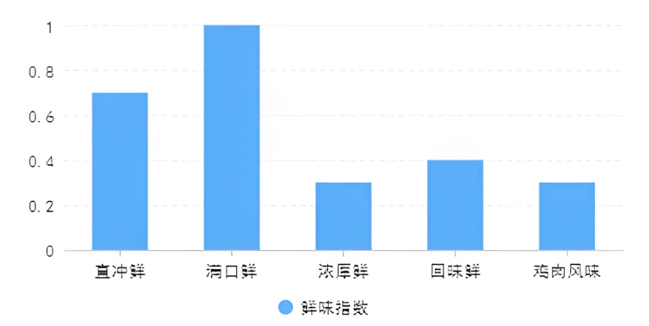 - 直冲鲜:入口强烈,鲜味强度高、直接而又刺激,味道来得快