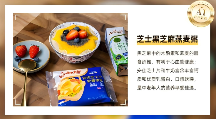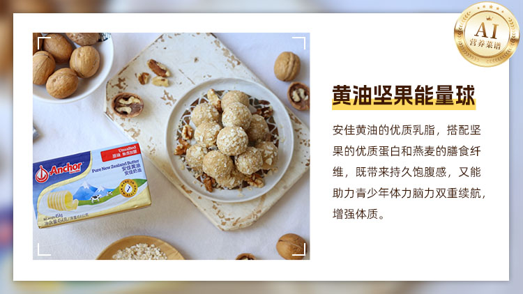 作为新西兰草饲乳品的代表品牌,安佳黄油、稀奶油、芝士等产品不仅奶香浓郁,还具备高钙、高蛋白含量,含有维生素a和维生素d等多重营养价值。但对于这类产品,消费者却常有热量或脂肪摄入的相关顾虑,但其实乳制品含有的天然营养元素都是优质营养来源。通过ai营养师提供的科学化按需配比服务,则可帮助消费者排除后顾之忧,享受美食的同时兼顾健康。