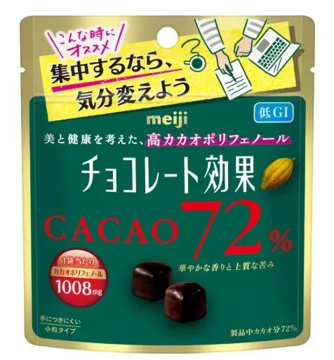 明治以白巧克力、烘焙可可、植物蛋白等“少可可脂”产品降低对传统原料的依赖,同时顺应健康潮流。代表性的“巧克力效果”系列,则通过高可可浓度强调对心血管、认知力等方面的益处,推动巧克力进入“每日摄取=健康管理”的新认知。