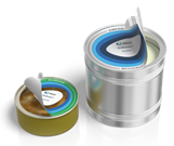 可使用平拉手或指环拉手来打开盖膜; 可与不含涂层或覆有pp膜的马口铁以及覆铝环封合; 良好的阻氧、防潮、保香和阻光效果。 |