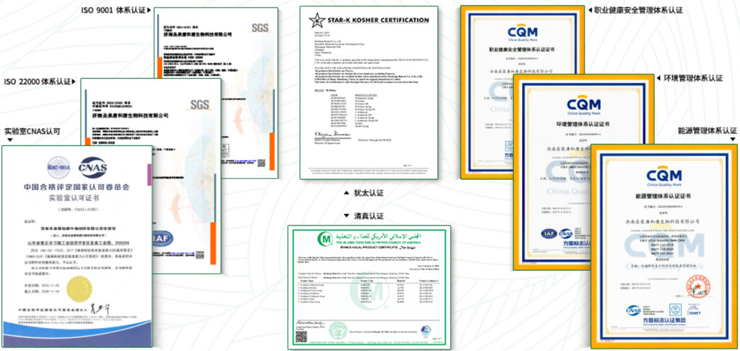 为更好地确保产品质量的稳定性,唐和唐建成10万级净化车间,并通过了fssc22000、iso9001、 iso22000、清真、犹太等认证;为更好得保证产品稳定供应,建成年产3000吨高纯度l-阿拉伯糖的生产线,并可根据客户的需求不断调整产品规格、剂型。