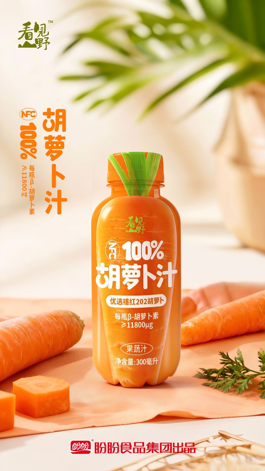 据盼盼饮品介绍,「看见山野」100%晋江胡萝卜汁选用独特的晋江“禧红202”胡萝卜为原料。